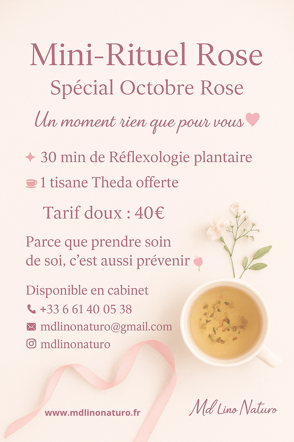 Je suis Marie-Désiré Lino (Md LinoNaturo), naturopathe et réflexologue basée en Seine-et-Marne. Mon objectif est de vous accompagner vers votre mieux-être grâce à des méthodes naturelles et personnalisées.